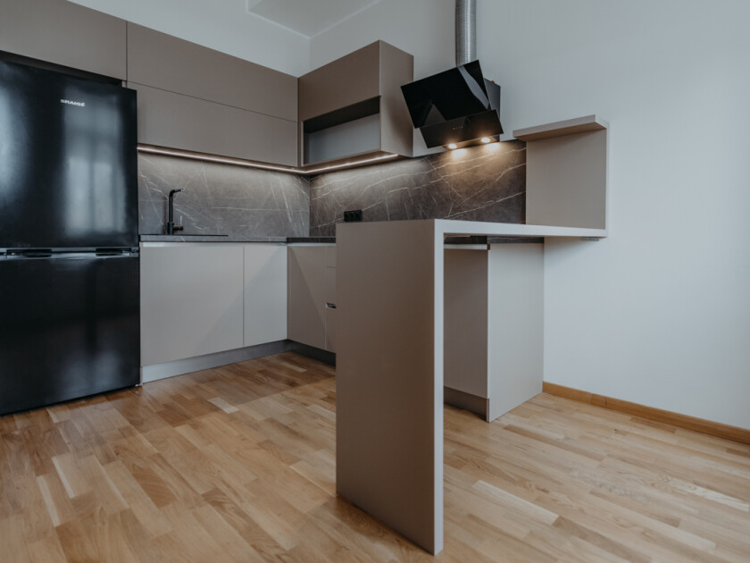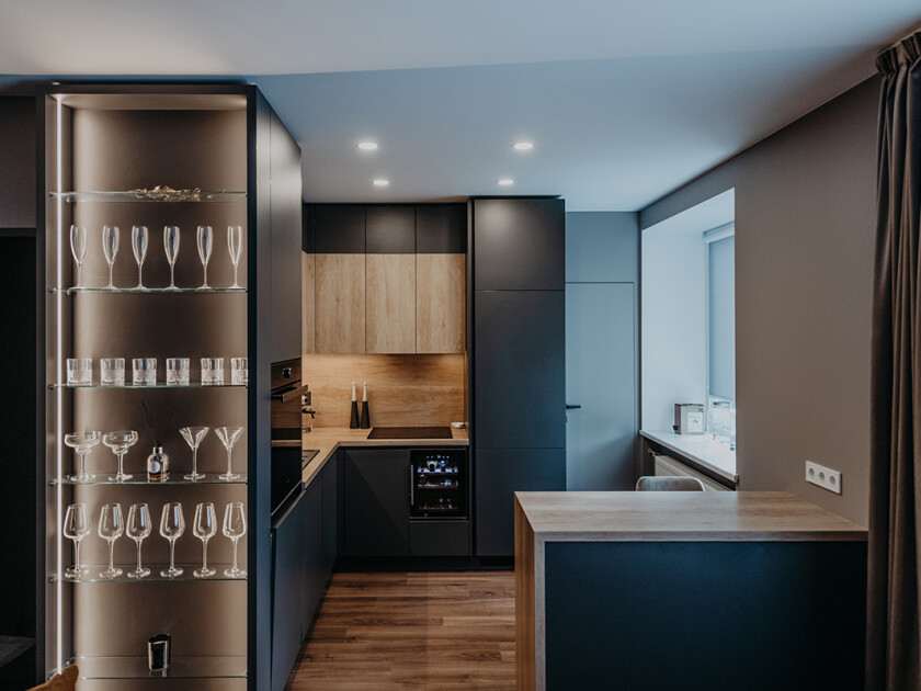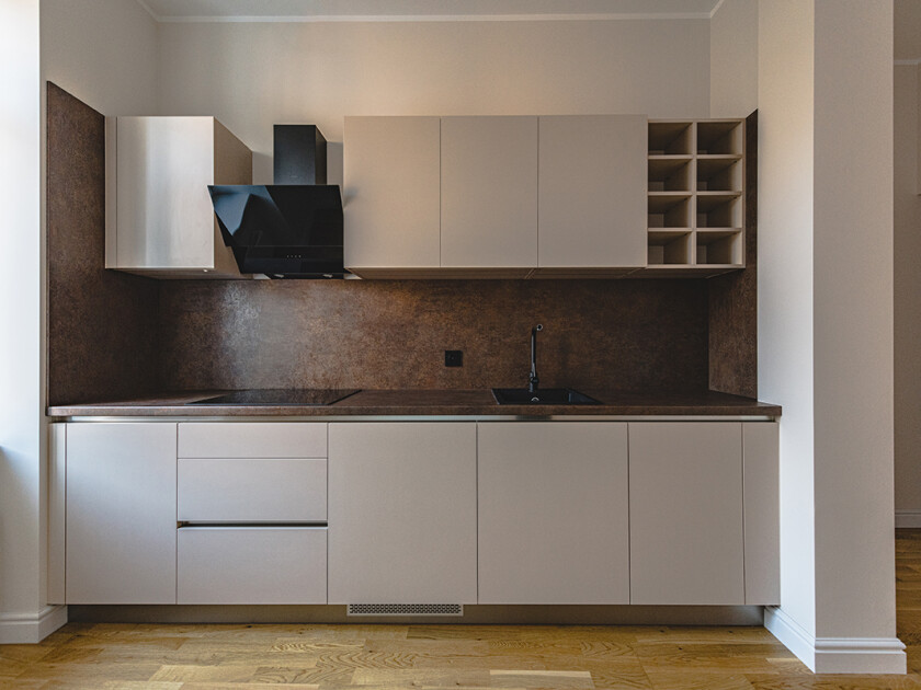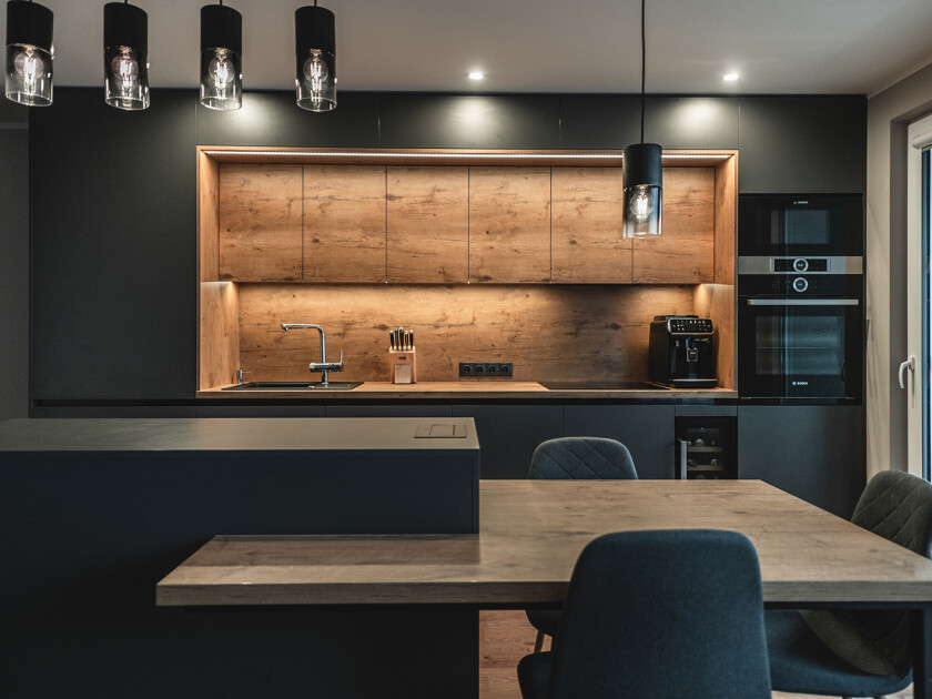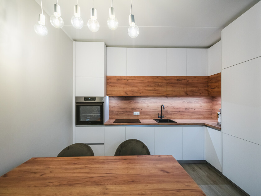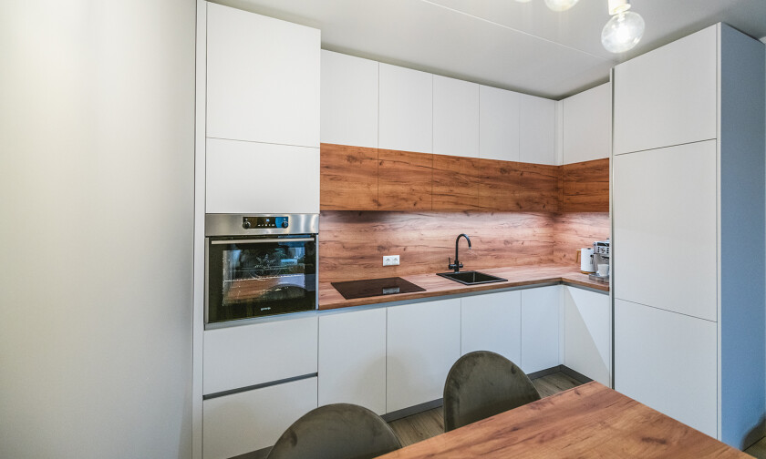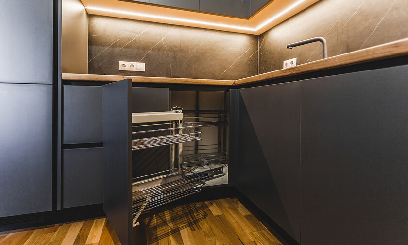 Jūs vēlaties, lai mikroviļņu krāsns atrastos pa labi no plīts? Tiks izdarīts. Atvilknei ar virtuves piederumiem jāatrodas virs speciāla skapīša priekš katliem? Lūdzu! Lai viss tiktu izvietots tā, kā būs ērti Jums un tieši Jums? Savādāk nemaz nevar būt! Ieskaitot apgaismojumu, papildus rozetes un pašu mūsdienīgāko furnitūru.